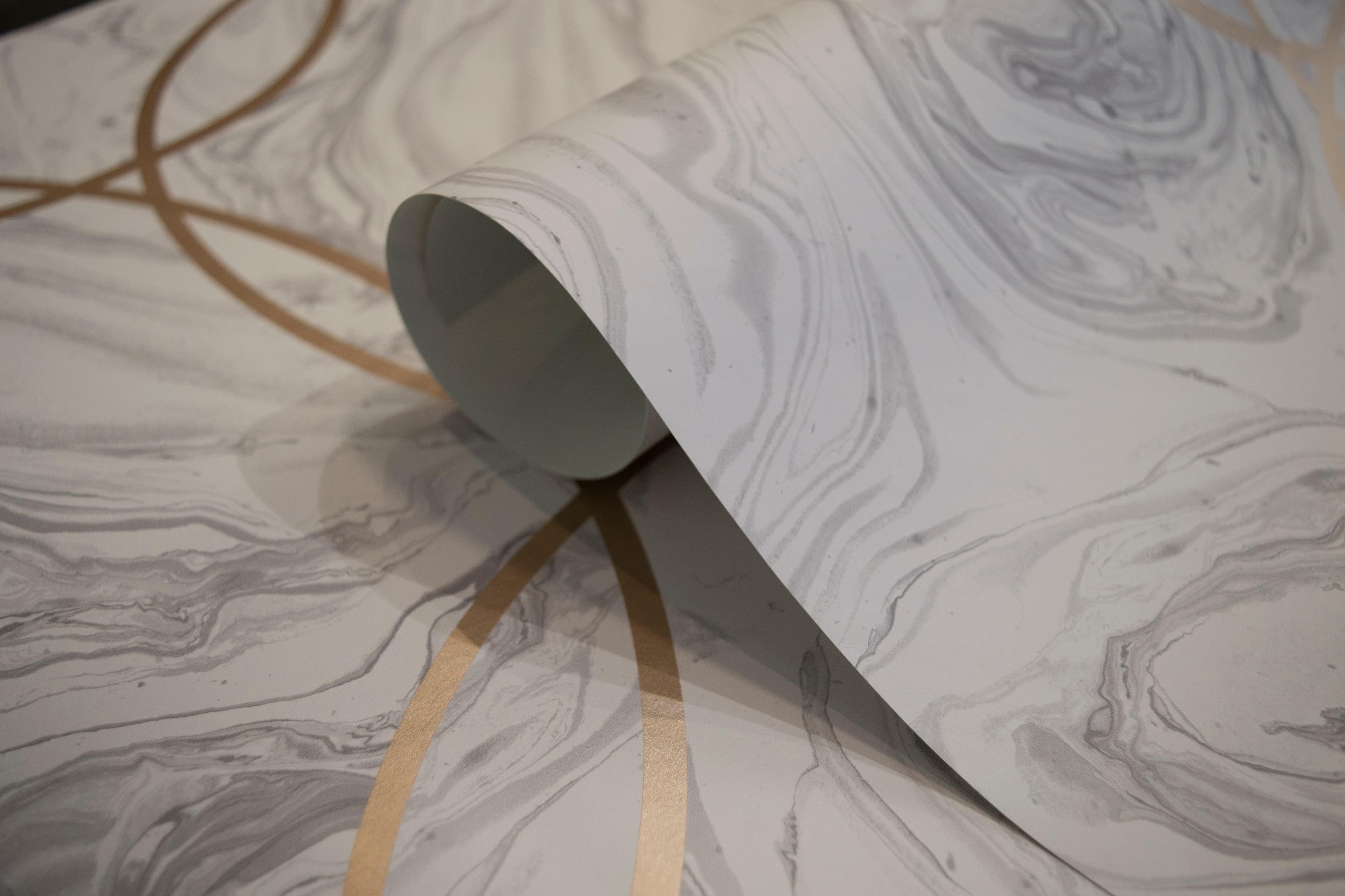 Papel de Colgadura Piedra Mármol Pulido con Aros Oro Rosa Rollo de 5,2m²