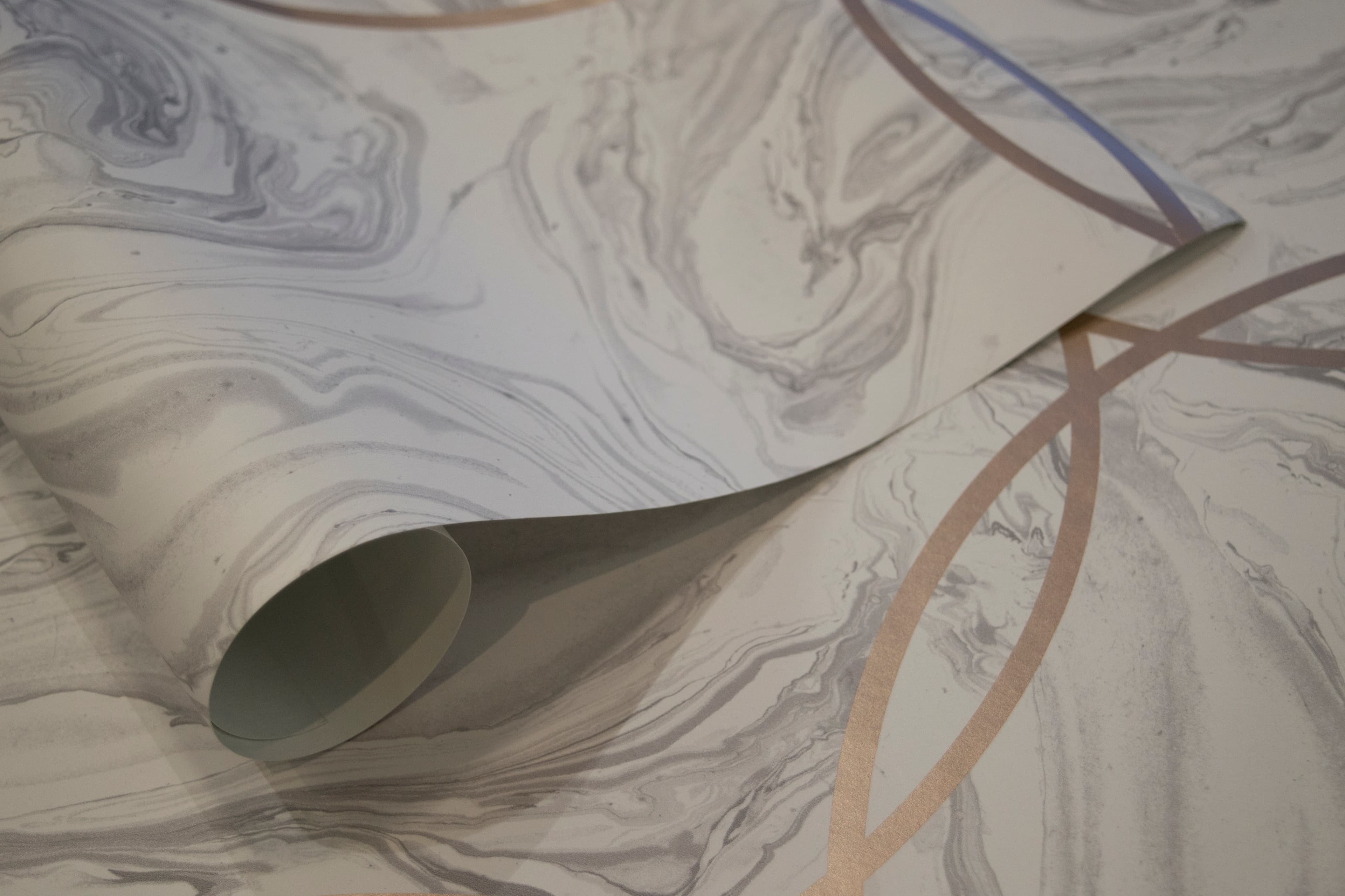 Papel de Colgadura Piedra Mármol Pulido con Aros Oro Rosa Rollo de 5,2m²